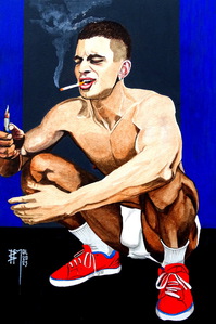 Het mannelijk lichaam weergegeven in gevariëerde stijlen en technieken. Buiten NL is het vooral dit onderwerp waardoor ik bekendheid kreeg. Ik maak gebruik van levende modellen die komen poseren ,maar ook foto`s kunnen een goede inspiratie zijn. Natuurlijk worden deze dan niet gewoon gekopiëert,er wordt iets anders van gemaakt waarbij kreativiteit voorop staat. Mijn werk bestaat tegenwoordig voor 65% uit het schilderen van de mannelijke figuur.
