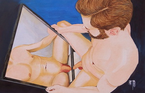 2025second portrait of my model Xavier, in a mirror. October 2025 watercolours on cottonpaper 40x50cm